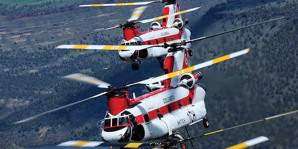 The CH-47 Chinook manufactured by Columbia Helicopters/Boeing, has an exceptional heavy-lift capability, allowing it to transport large vehicles, artillery, and numerous troops over long distances. Its unique tandem rotor design enhances stability, enables higher speeds and superior than most other helicopters.
